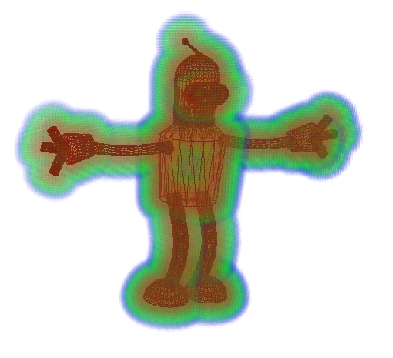 3D Distance Field of Bender model (12k polygons): time taken to compute the distance field on 150x150x50 grid using our algorithm is 0,02 sec.
