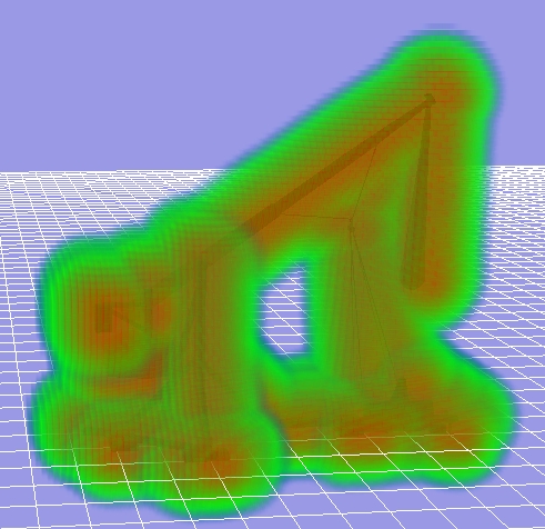 3D Distance Field of Catapult model (9.6k polygons): time taken to compute the distance field with resolution 208x204x222 using our algorithm is 0,14 sec. |